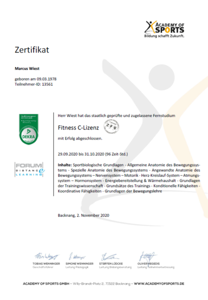 Sportmentaltrainer (staatlich anerkannt) Academy of Sports